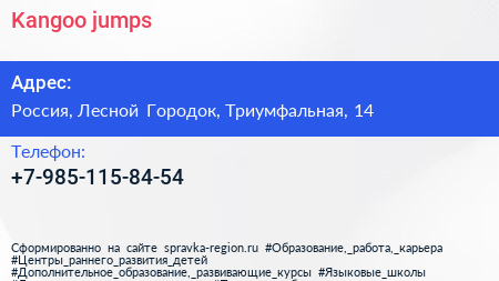Kangoo jumps по адресу Магнит, 14, Триумфальная улица, Жилой комплекс «Гусарская баллада», Одинцово, Одинцовский городской округ, Московская область, Центральный федеральный округ, 143000, Россия в дальнейшем Организация, размещена в следующих категориях: