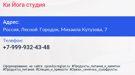 Ки Йога, студия по адресу 7, улица Михаила Кутузова, Жилой комплекс «Гусарская баллада», ВНИИССОК, Одинцовский городской округ, Московская область, Центральный федеральный округ, 143072, Россия в дальнейшем Организация, размещена в следующих категориях: