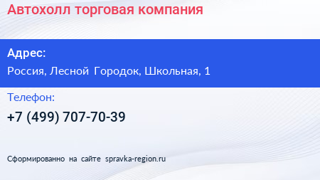 Автохолл, торговая компания по адресу Торгово-деловой комплекс "Город", 1, Школьная улица, Лесной Городок, Одинцовский городской округ, Московская область, Центральный федеральный округ, 143080, Россия в дальнейшем Организация, размещена в следующих категориях: