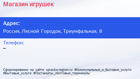 Магазин игрушек по адресу 8, Триумфальная улица, Жилой комплекс «Гусарская баллада», Одинцово, Одинцовский городской округ, Московская область, Центральный федеральный округ, 143002, Россия в дальнейшем Организация, размещена в следующих категориях:
