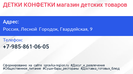 ДЕТКИ-КОНФЕТКИ, магазин детских товаров по адресу Ozon, 9, Гвардейская улица, Жилой комплекс «Гусарская баллада», Одинцово, Одинцовский городской округ, Московская область, Центральный федеральный округ, 143002, Россия в дальнейшем Организация, размещена в следующих категориях: