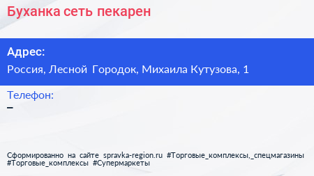 Буханка, сеть пекарен по адресу 1, улица Михаила Кутузова, Жилой комплекс «Гусарская баллада», ВНИИССОК, Одинцовский городской округ, Московская область, Центральный федеральный округ, 143072, Россия в дальнейшем Организация, размещена в следующих категориях: