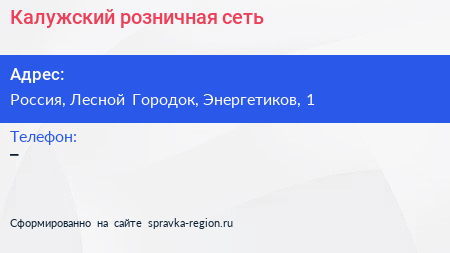 Калужский, розничная сеть по адресу Торговый центр "Орешек", 1, улица Энергетиков, Лесной Городок, Одинцовский городской округ, Московская область, Центральный федеральный округ, 143080, Россия в дальнейшем Организация, размещена в следующих категориях: