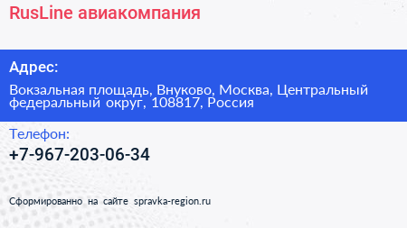 RusLine, авиакомпания по адресу Вокзальная площадь, Внуково, Москва, Центральный федеральный округ, 108817, Россия в дальнейшем Организация, размещена в следующих категориях: