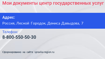 Мои документы, центр государственных услуг по адресу Гусарская баллада, 7, улица Дениса Давыдова, Жилой комплекс «Гусарская баллада», ВНИИССОК, Одинцовский городской округ, Московская область, Центральный федеральный округ, 143002, Россия в дальнейшем Организация, размещена в следующих категориях: