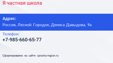 Я, частная школа по адресу 9А, улица Дениса Давыдова, Жилой комплекс «Гусарская баллада», ВНИИССОК, Одинцовский городской округ, Московская область, Центральный федеральный округ, 143072, Россия в дальнейшем Организация, размещена в следующих категориях: