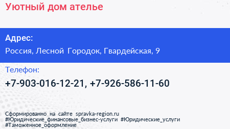 Уютный дом, ателье по адресу 9, Гвардейская улица, Жилой комплекс «Гусарская баллада», Одинцово, Одинцовский городской округ, Московская область, Центральный федеральный округ, 143002, Россия в дальнейшем Организация, размещена в следующих категориях: