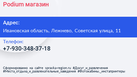 Podium, магазин по адресу Ивановская область, Лежнево, Советская улица, 11 в дальнейшем Организация, размещена в следующих категориях: