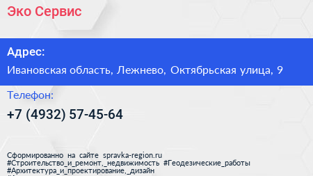 Эко-Сервис по адресу Ивановская область, Лежнево, Октябрьская улица, 9 в дальнейшем Организация, размещена в следующих категориях:
