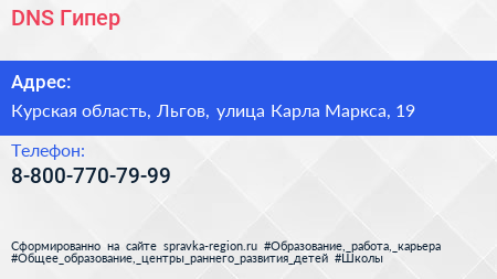 DNS Гипер по адресу Курская область, Льгов, улица Карла Маркса, 19 в дальнейшем Организация, размещена в следующих категориях: