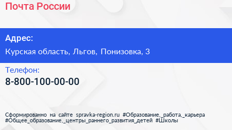 Почта России по адресу Курская область, Льгов, Понизовка, 3 в дальнейшем Организация, размещена в следующих категориях: