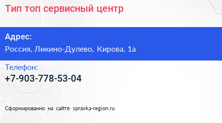 Тип-топ, сервисный центр по адресу Бристоль, 1А, улица Кирова, Посёлок Кировский, Ликино-Дулёво, Орехово-Зуевский городской округ, Московская область, Центральный федеральный округ, 142670, Россия в дальнейшем Организация, размещена в следующих категориях: