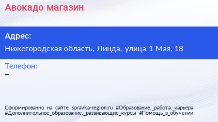 Авокадо, магазин по адресу Нижегородская область, Линда, улица 1 Мая, 18 в дальнейшем Организация, размещена в следующих категориях: