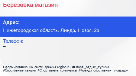 Березовка, магазин по адресу Нижегородская область, Линда, Новая, 2а в дальнейшем Организация, размещена в следующих категориях: