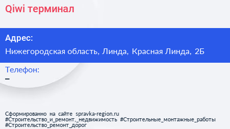 Qiwi, терминал по адресу Нижегородская область, Линда, Красная Линда, 2Б в дальнейшем Организация, размещена в следующих категориях: