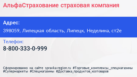 АльфаСтрахование, страховая компания по адресу 398059, Липецкая область, Липецк, Неделина, ст2е в дальнейшем Организация, размещена в следующих категориях: