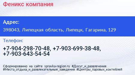 Феникс, компания по адресу 398043, Липецкая область, Липецк, Гагарина, 129 в дальнейшем Организация, размещена в следующих категориях: