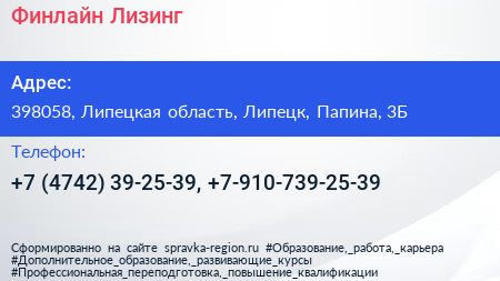 Финлайн-Лизинг по адресу 398058, Липецкая область, Липецк, Папина, 3Б в дальнейшем Организация, размещена в следующих категориях: