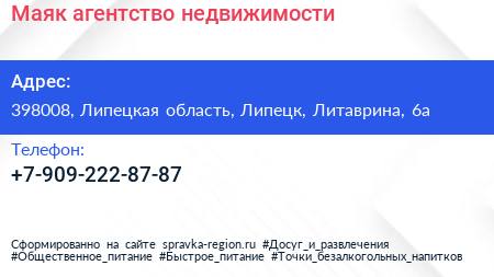 Маяк, агентство недвижимости по адресу 398008, Липецкая область, Липецк, Литаврина, 6а в дальнейшем Организация, размещена в следующих категориях: