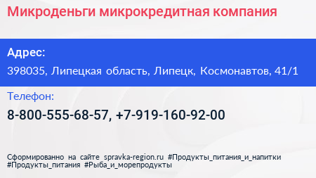 Микроденьги, микрокредитная компания по адресу 398035, Липецкая область, Липецк, Космонавтов, 41/1 в дальнейшем Организация, размещена в следующих категориях: