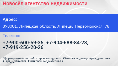 Новосёл, агентство недвижимости по адресу 398001, Липецкая область, Липецк, Первомайская, 78 в дальнейшем Организация, размещена в следующих категориях:
