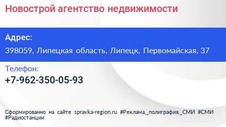 Новострой, агентство недвижимости по адресу 398059, Липецкая область, Липецк, Первомайская, 37 в дальнейшем Организация, размещена в следующих категориях:
