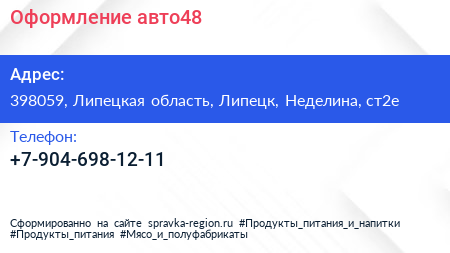 Оформление-авто48 по адресу 398059, Липецкая область, Липецк, Неделина, ст2е в дальнейшем Организация, размещена в следующих категориях: