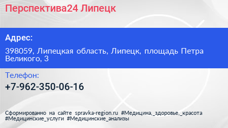 Перспектива24-Липецк по адресу 398059, Липецкая область, Липецк, площадь Петра Великого, 3 в дальнейшем Организация, размещена в следующих категориях: