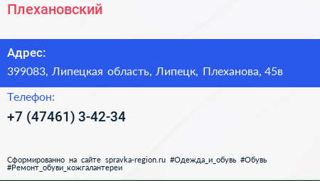 Плехановский по адресу 399083, Липецкая область, Липецк, Плеханова, 45в в дальнейшем Организация, размещена в следующих категориях: