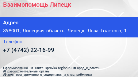 Взаимопомощь-Липецк по адресу 398001, Липецкая область, Липецк, Льва Толстого, 1 в дальнейшем Организация, размещена в следующих категориях:
