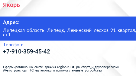 Якорь по адресу Липецкая область, Липецк, Ленинский лесхоз 91 квартал, ст1 в дальнейшем Организация, размещена в следующих категориях: