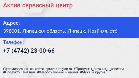 Актив, сервисный центр по адресу 398001, Липецкая область, Липецк, Крайняя, ст6 в дальнейшем Организация, размещена в следующих категориях: