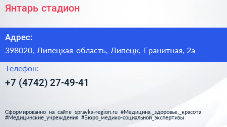 Янтарь, стадион по адресу 398020, Липецкая область, Липецк, Гранитная, 2а в дальнейшем Организация, размещена в следующих категориях: