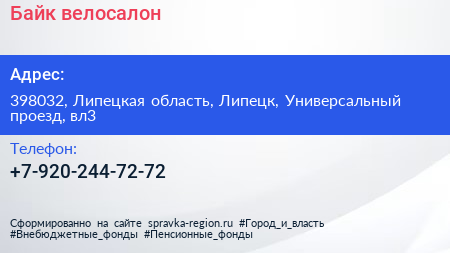 Байк, велосалон по адресу 398032, Липецкая область, Липецк, Универсальный проезд, вл3 в дальнейшем Организация, размещена в следующих категориях: