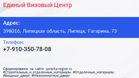 Единый Визовый Центр по адресу 398016, Липецкая область, Липецк, Гагарина, 73 в дальнейшем Организация, размещена в следующих категориях: