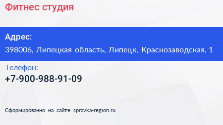 Фитнес-студия по адресу 398006, Липецкая область, Липецк, Краснозаводская, 1 в дальнейшем Организация, размещена в следующих категориях:
