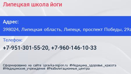 Липецкая школа йоги по адресу 398024, Липецкая область, Липецк, проспект Победы, 29а в дальнейшем Организация, размещена в следующих категориях: