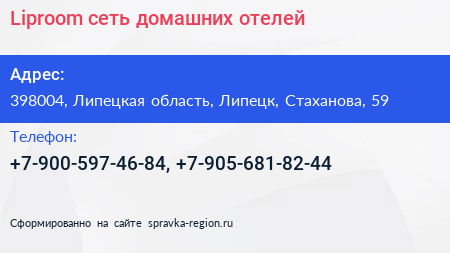 Liproom, сеть домашних отелей по адресу 398004, Липецкая область, Липецк, Стаханова, 59 в дальнейшем Организация, размещена в следующих категориях: