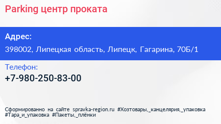 Parking, центр проката по адресу 398002, Липецкая область, Липецк, Гагарина, 70Б/1 в дальнейшем Организация, размещена в следующих категориях:
