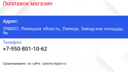 Поплавок, магазин по адресу 398007, Липецкая область, Липецк, Заводская площадь, 9в в дальнейшем Организация, размещена в следующих категориях: