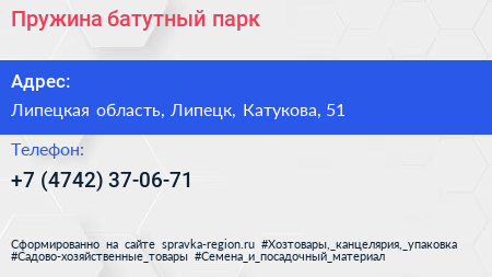 Пружина, батутный парк по адресу Липецкая область, Липецк, Катукова, 51 в дальнейшем Организация, размещена в следующих категориях: