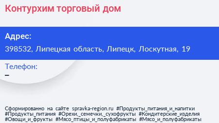 Контурхим, торговый дом по адресу 398532, Липецкая область, Липецк, Лоскутная, 19 в дальнейшем Организация, размещена в следующих категориях: