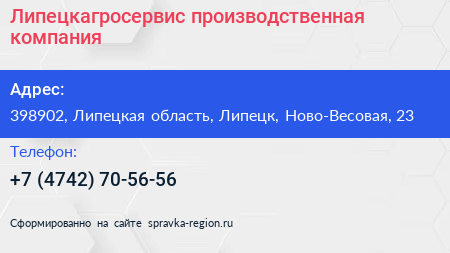 Липецкагросервис, производственная компания по адресу 398902, Липецкая область, Липецк, Ново-Весовая, 23 в дальнейшем Организация, размещена в следующих категориях: