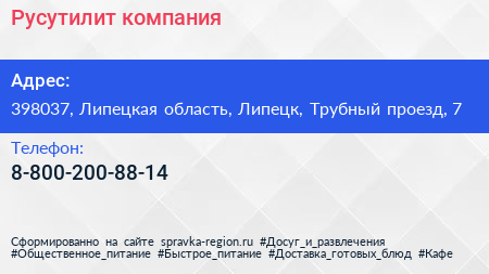 Русутилит, компания по адресу 398037, Липецкая область, Липецк, Трубный проезд, 7 в дальнейшем Организация, размещена в следующих категориях: