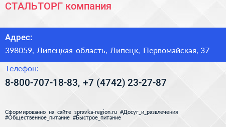 СТАЛЬТОРГ, компания по адресу 398059, Липецкая область, Липецк, Первомайская, 37 в дальнейшем Организация, размещена в следующих категориях: