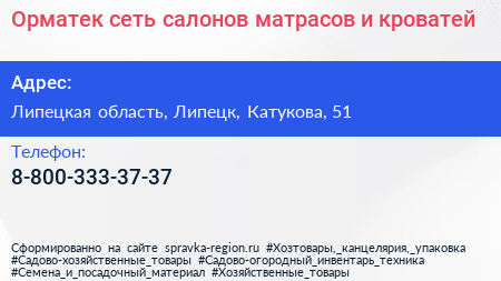 Орматек, сеть салонов матрасов и кроватей по адресу Липецкая область, Липецк, Катукова, 51 в дальнейшем Организация, размещена в следующих категориях: