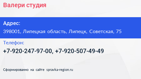 Валери, студия по адресу 398001, Липецкая область, Липецк, Советская, 75 в дальнейшем Организация, размещена в следующих категориях: