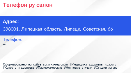 Телефон.ру, салон по адресу 398001, Липецкая область, Липецк, Советская, 66 в дальнейшем Организация, размещена в следующих категориях: