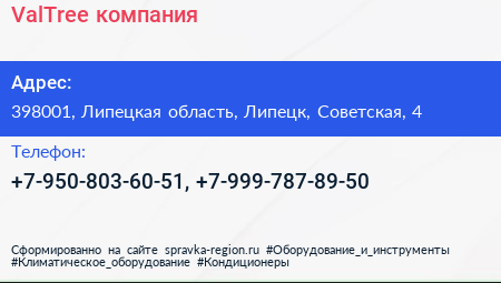 ValTree, компания по адресу 398001, Липецкая область, Липецк, Советская, 4 в дальнейшем Организация, размещена в следующих категориях: