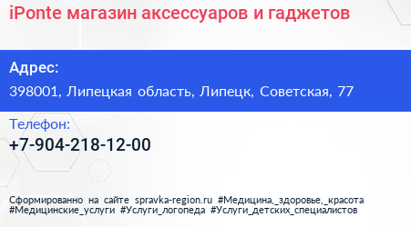 iPonte, магазин аксессуаров и гаджетов по адресу 398001, Липецкая область, Липецк, Советская, 77 в дальнейшем Организация, размещена в следующих категориях: